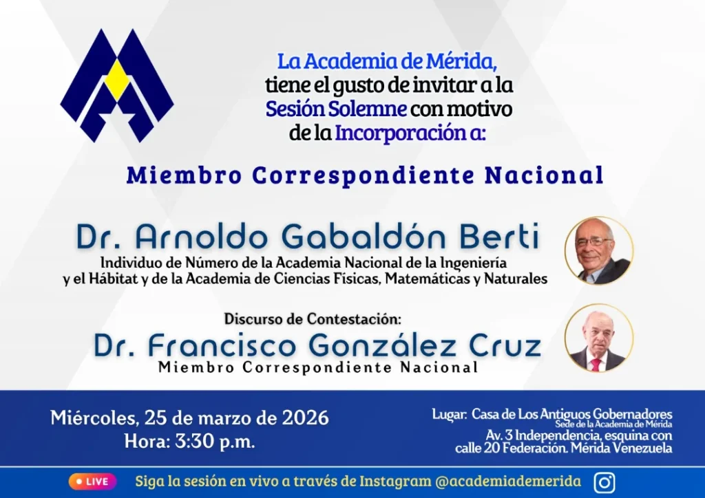 El 25 de marzo de 2026, el doctor Arnoldo José Gabaldón Berti, Individuo de Número (Sillón II) de la Academia de Ciencias Físicas, Matemáticas y Naturales de Venezuela (ACFIMAN), se convirtió en Miembro Correspondiente Nacional de la Academia de Mérida.