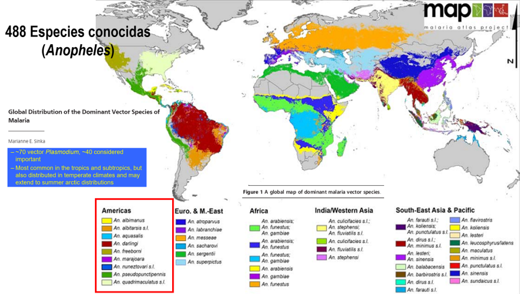Fuente: Sinka, M. E. (2013). Global Distribution of the Dominant Vector Species of Malaria. En S. Manguin (Ed.), Anopheles mosquitoes – New insights into malaria vectors (pp. 109-144). IntechOpen. https://doi.org/10.5772/55267